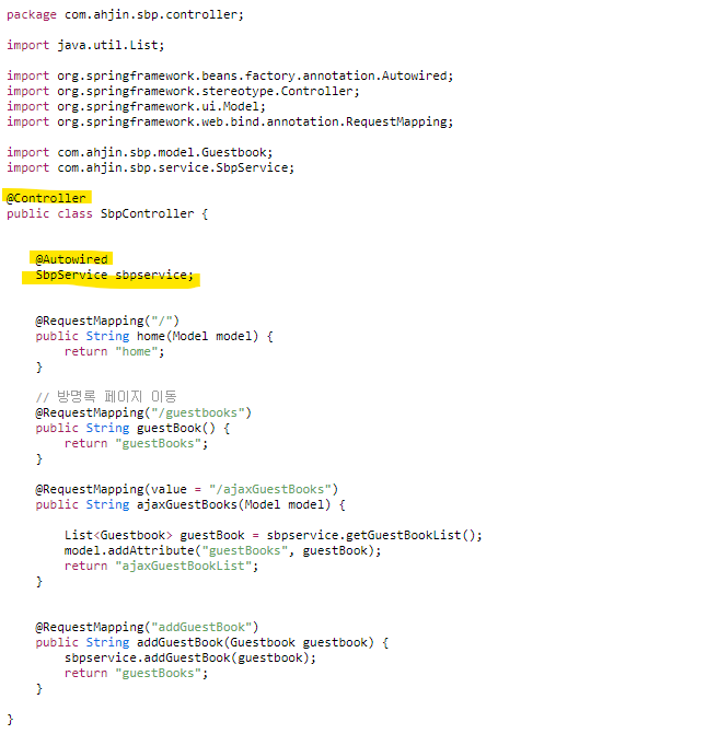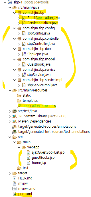 일단 패키지로 com.ahjin.sbp.controller를 만들고 세트인 [service / serviceImpl] 랑 [dao / model] 랑 추가로 config패키지를 만들고 하나씩 채워 나갈 것임