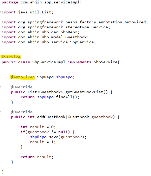 - 서비스 인터페이스 상속 serviceImpl