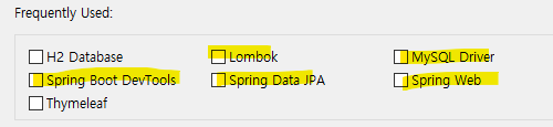 Lombok / MySQL Driver / Spring Web / Spring Data JPA / Spring Boot DevTools를 선택했다.