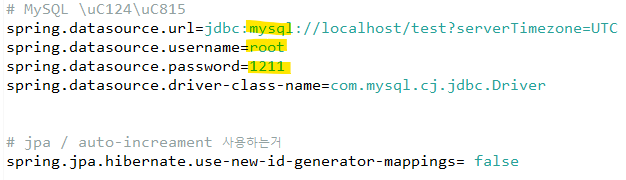 4-2) 데이터베이스 정보를 넣어주기 위해서 application.properties 에 기입한다.
